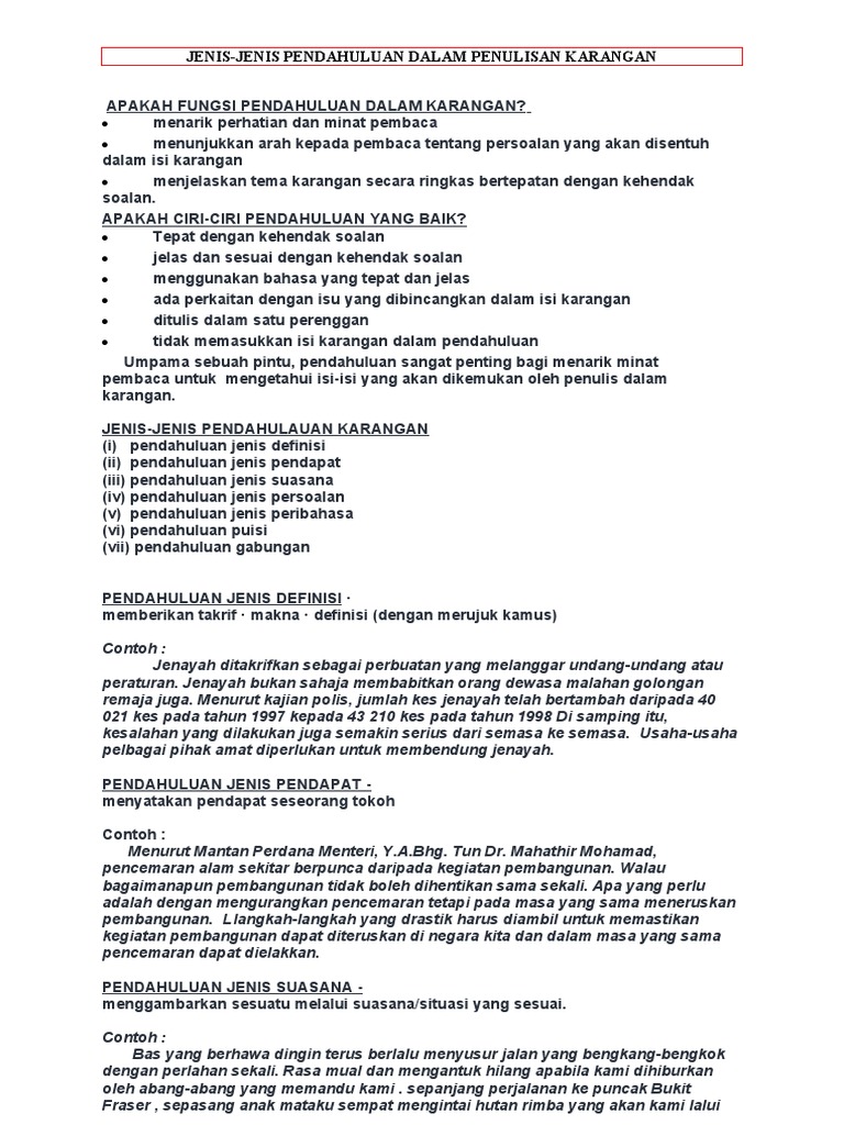 A4Hala tuju soalan dalam bentuk persoalan. 10 Jenis Pendahuluan Dalam Penulisan Karangan 1 Definisi 2 Pendapat Tokoh 3 Suasana atau. Sebaliknya isi atau fakta akan dibincangkan dalam perengggan.